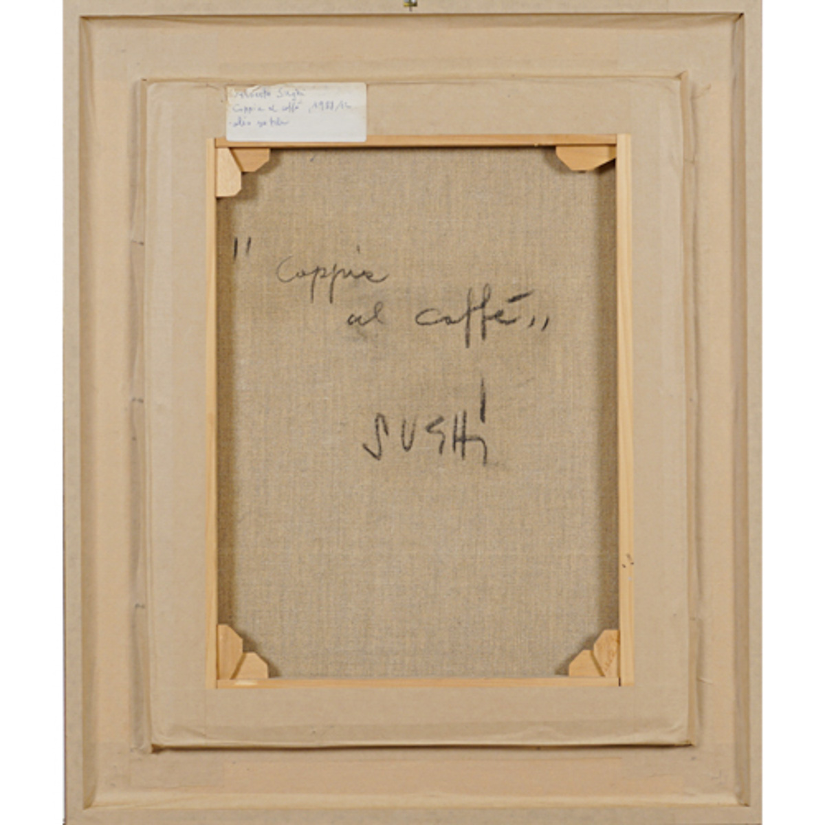 "Coppia al caffè", 1980, olio su tela, firmato in basso a sinistra, entro cornice