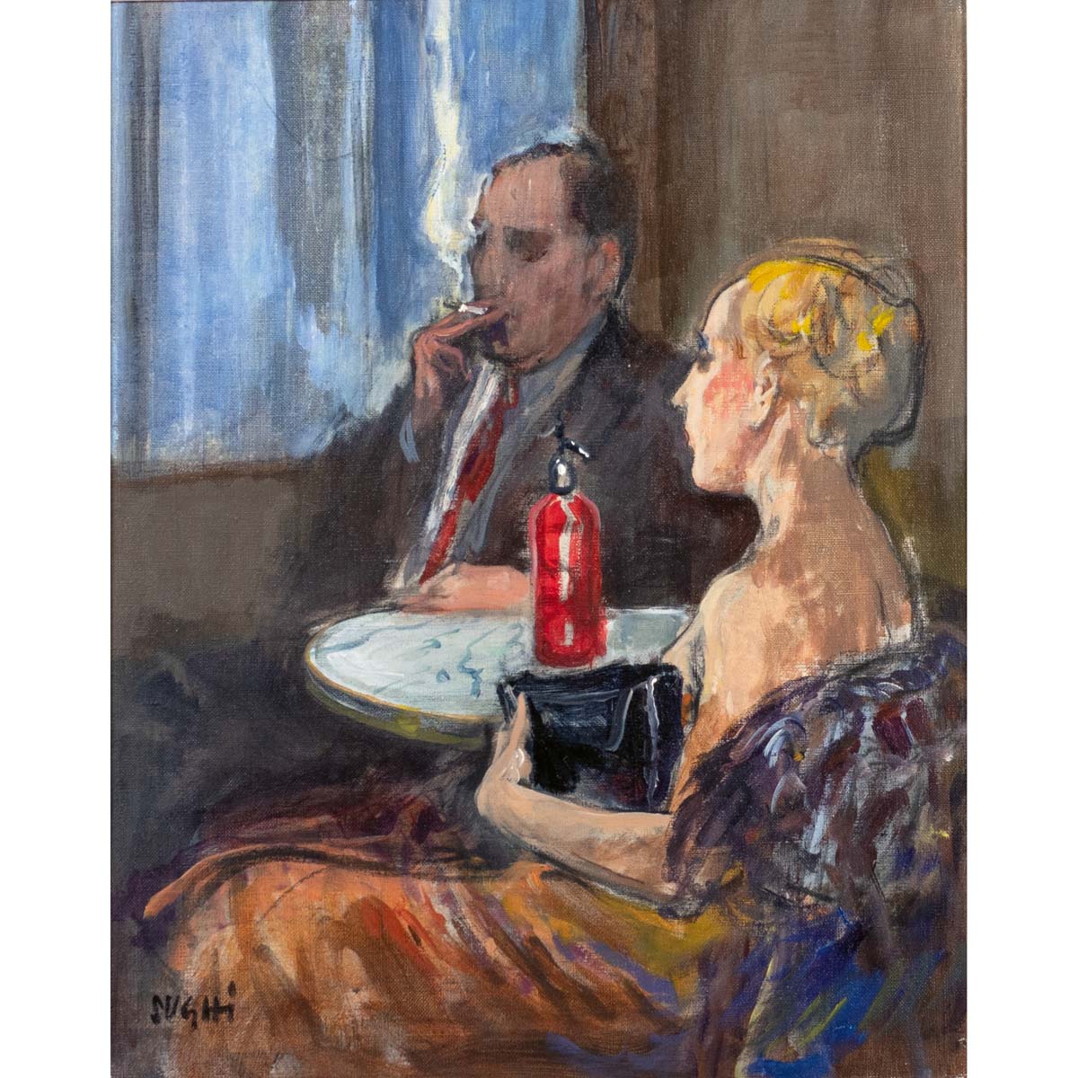 Alberto Sughi Cesena 1928 - Bologna 2012 50x40 cm. "Coppia al caffè", 1980,...