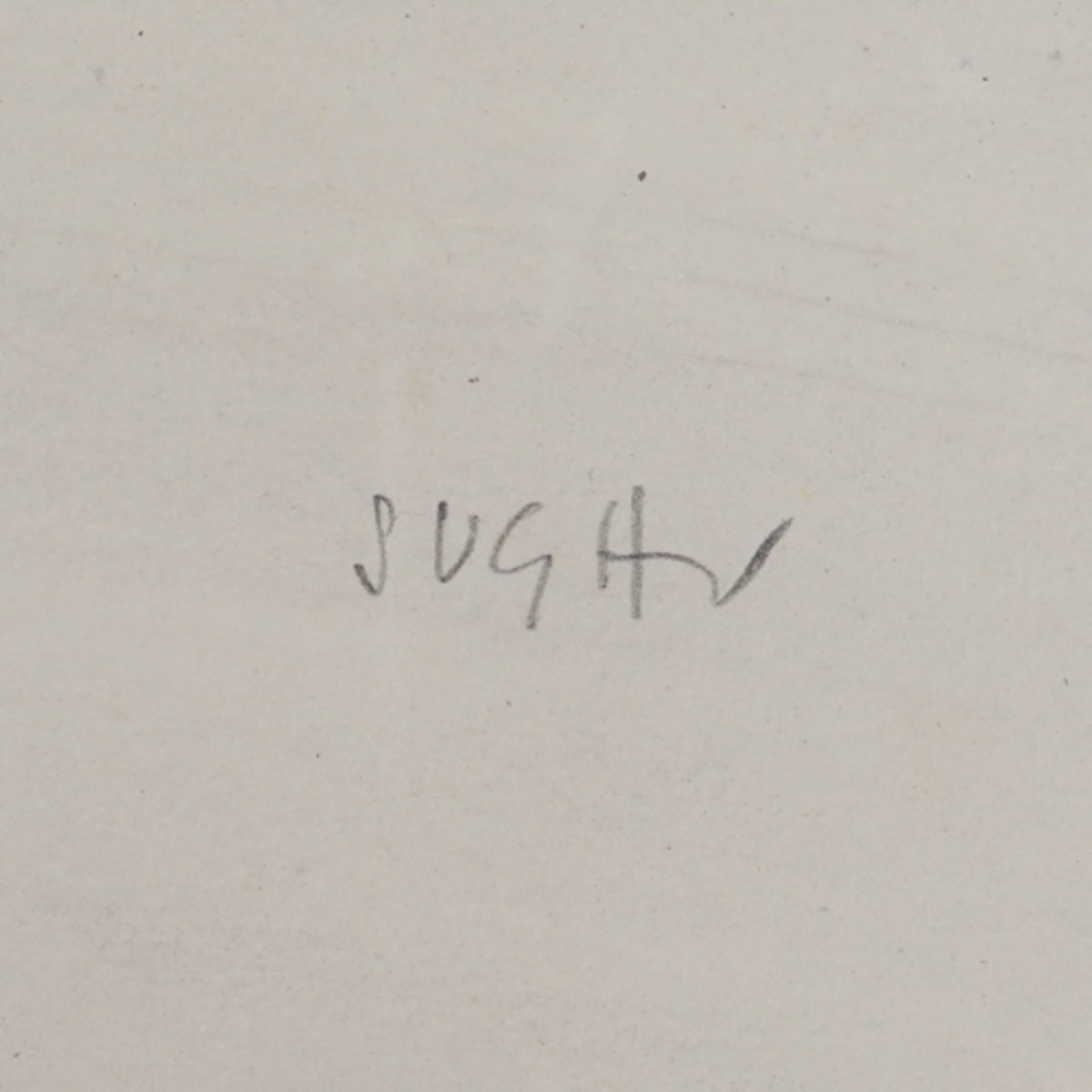 "Figura femminile", 1983, tempera su base litografica, firmata in basso a destra, entro cornice