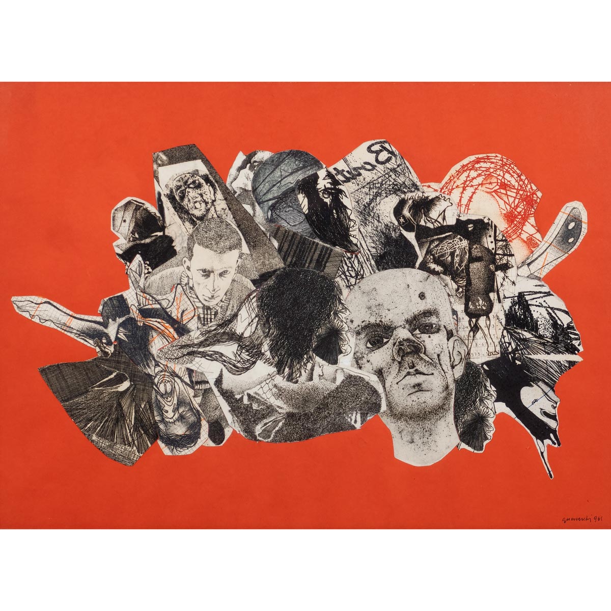 "Senza titolo", 1961, collage e tecnica mista su cartoncino, firma e data in basso a destra, entro cornice