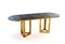 Tavolo - base triangolare in ottone con piano ovale in cristallo fumé - 1970 - ROMEO REGA - cm 73x211x86