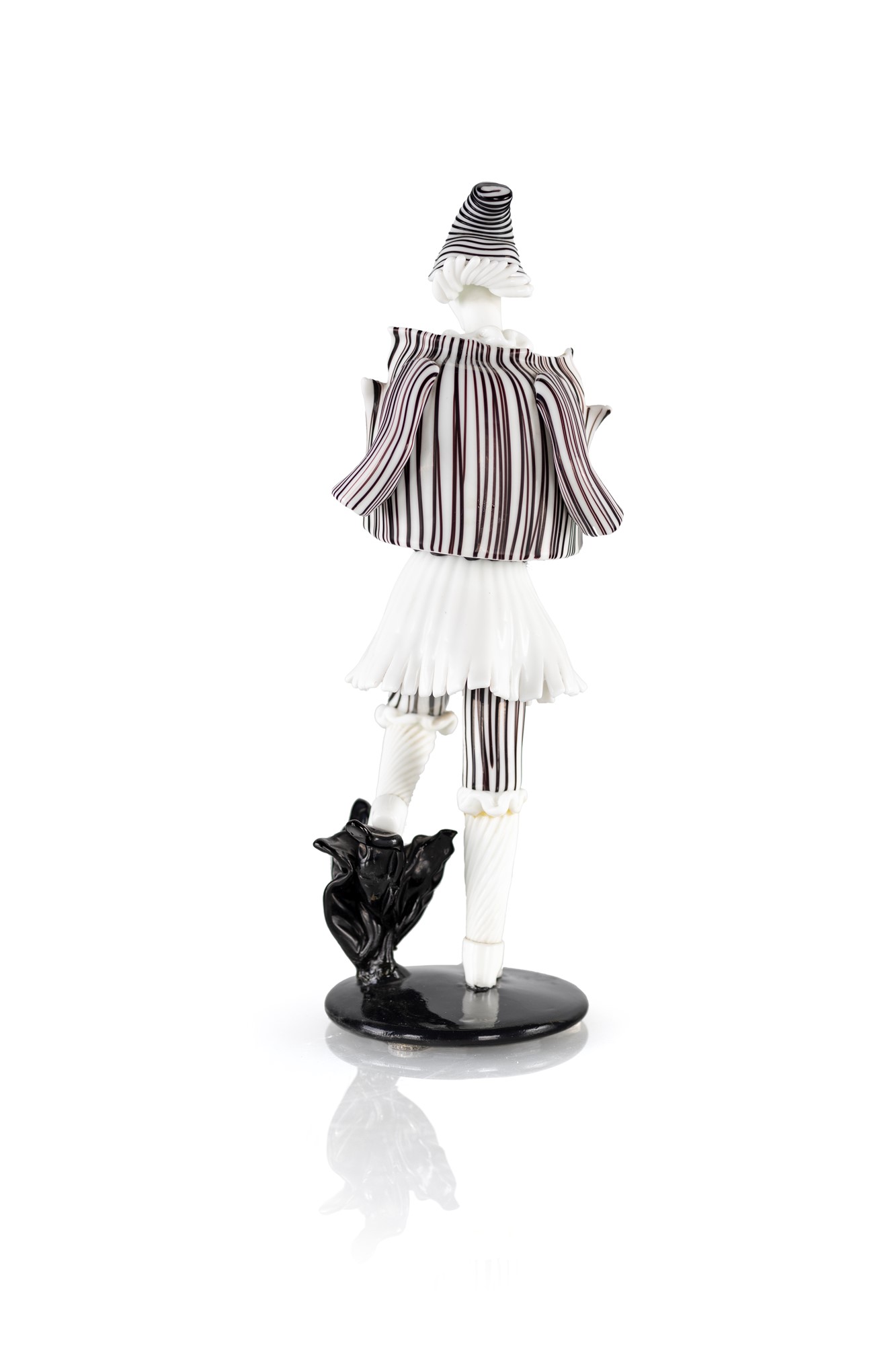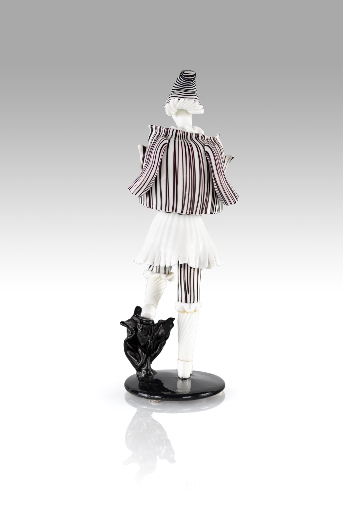 Figurina serie Tiepolo - in vetro lattimo con piccole finiture in vetro nero. Reca vecchio bollino Venini. - 1952 ca. - Venini Murano, Fulvio Bianconi - altezza cm 33