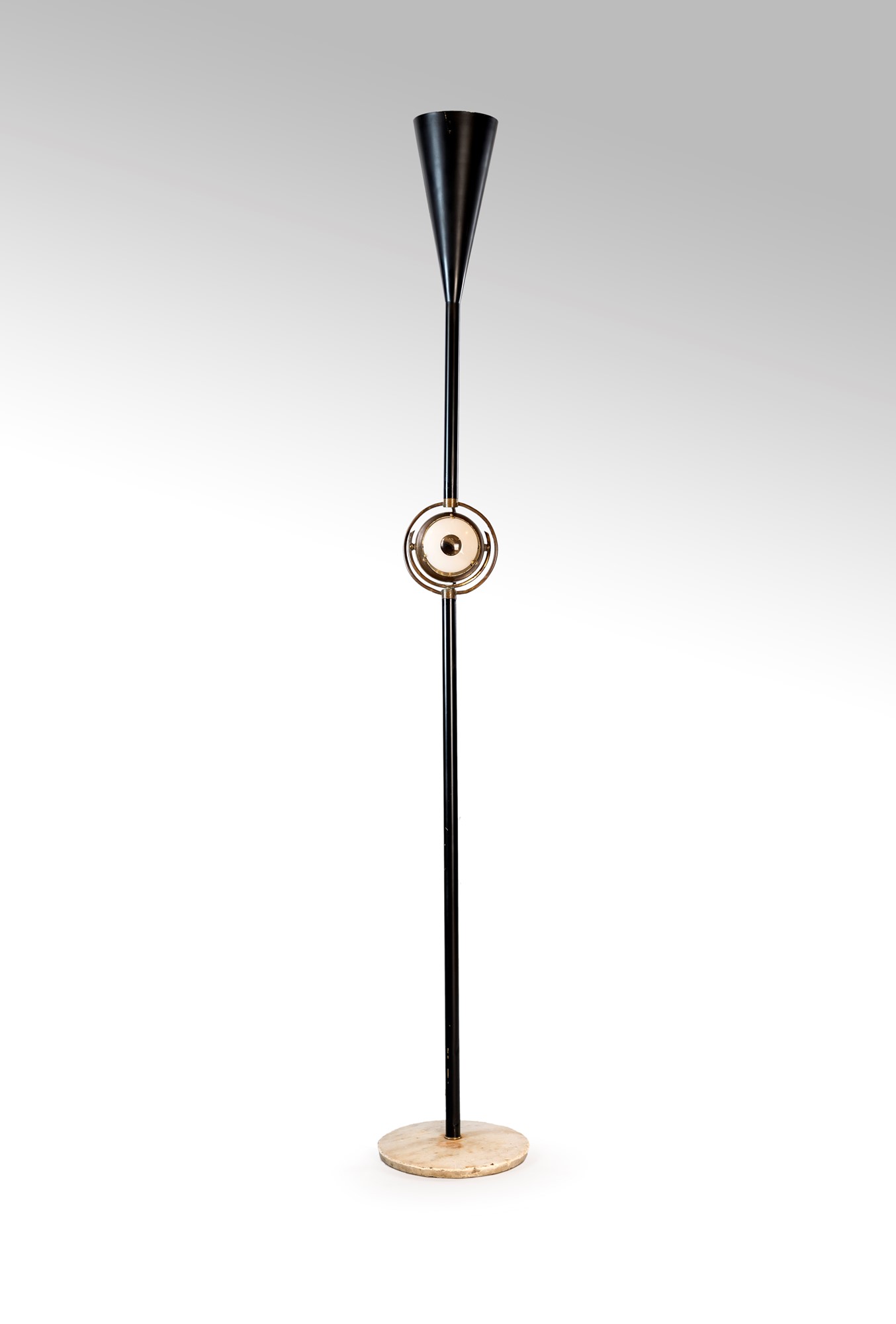 Lampada da terra - "Polifemo" in metallo , perspex base in marmo Prod. Arredoluce - 1956 - ANGELO LELLI - alt.m.2,00 base cm.30