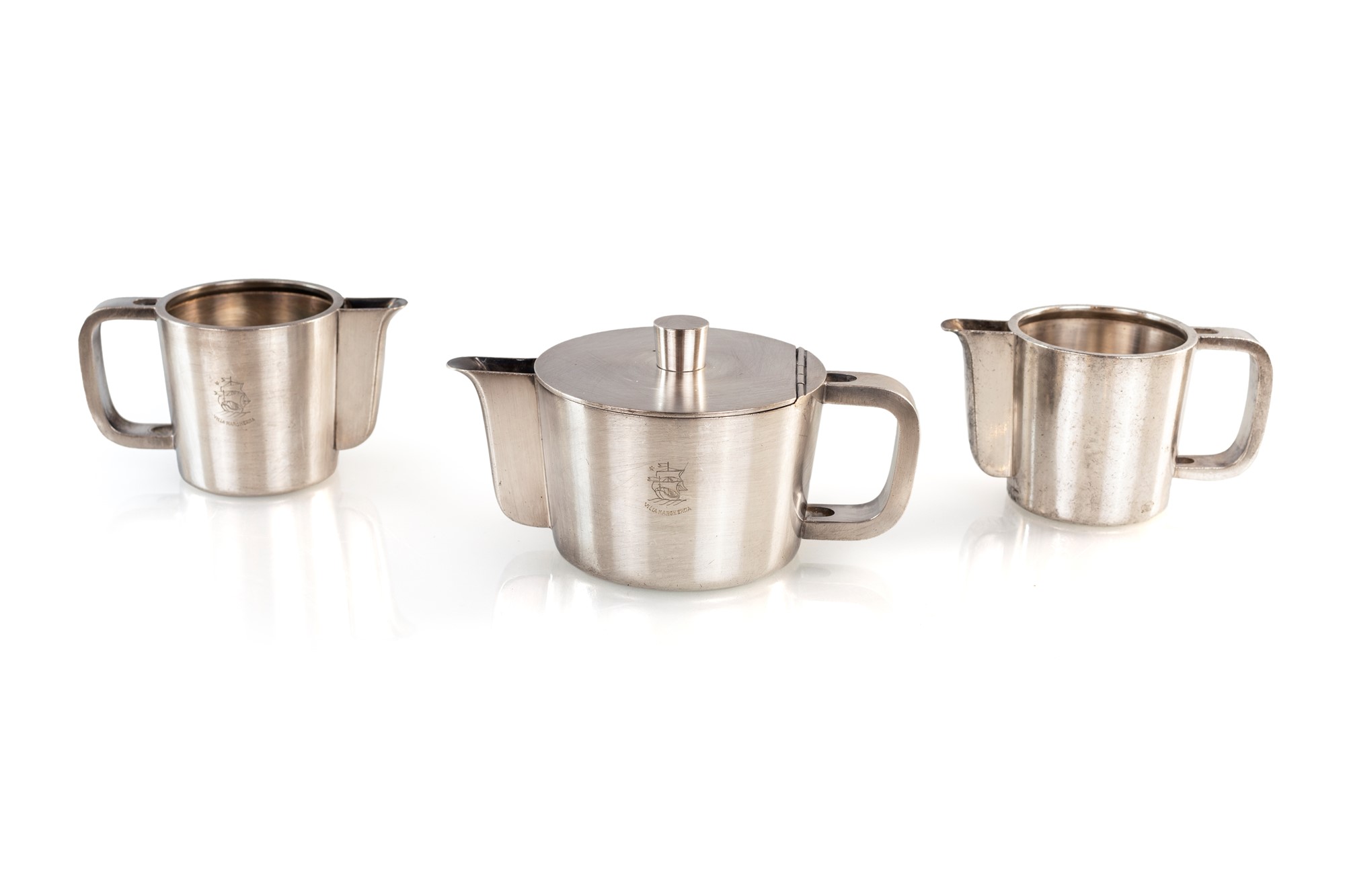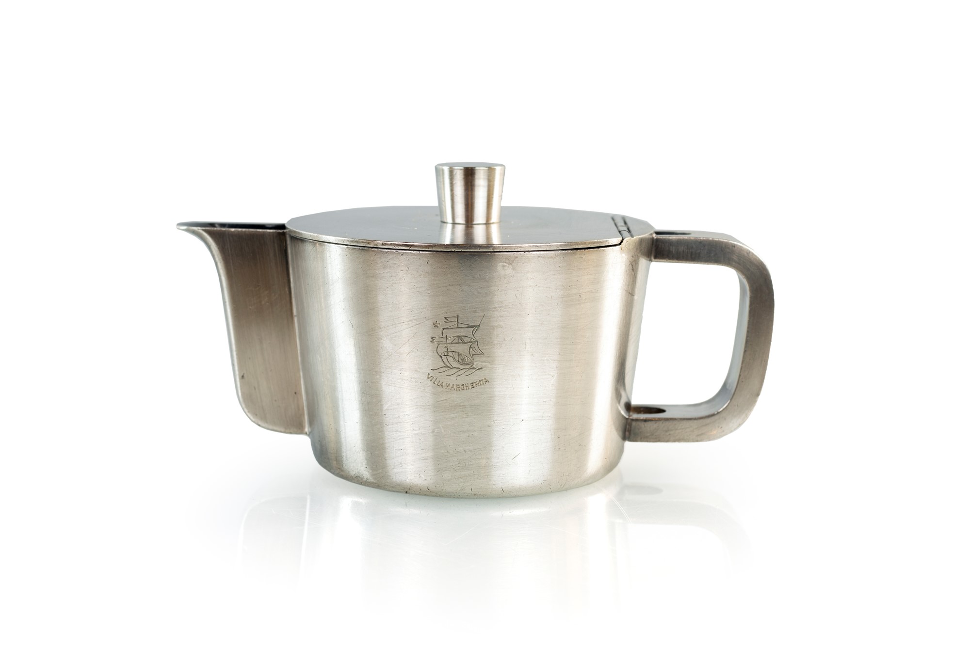 Servizio da caffe' - tre pezzi in alpacca firmato KRUPP VI triennale di Milano . Caffettiera 10x14x7 e due lattiere 5x10x6 - 1950ca - GIO' PONTI - cm7x12 17x7