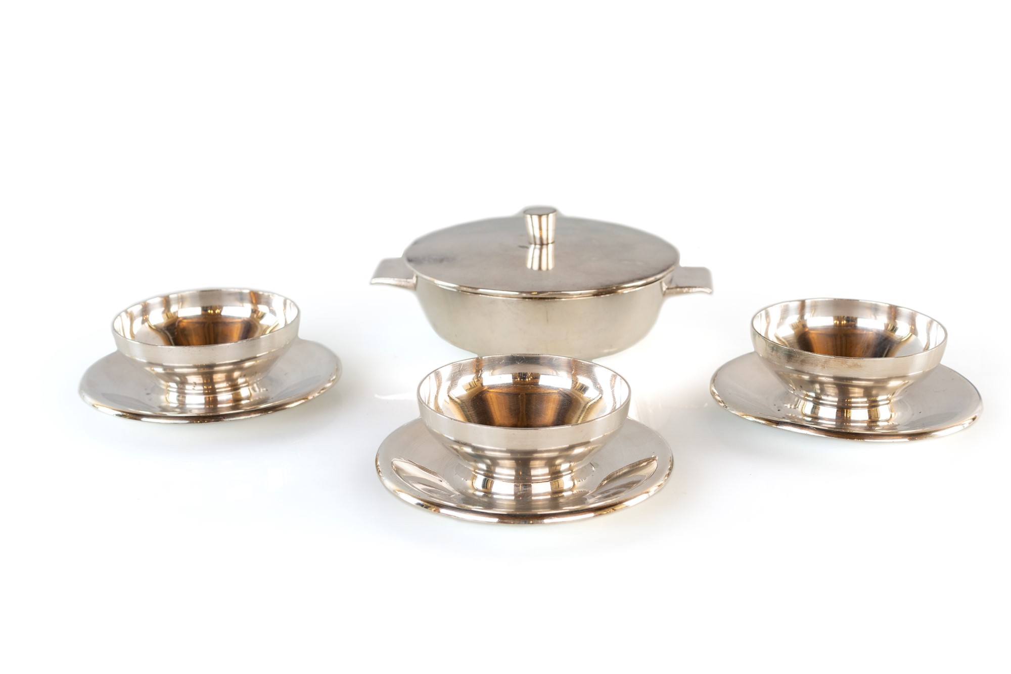 Servizio da tavola - composto da una legumiera e tre coppette in alpacca firmate KRUPP VI Triennale di Milano - GIO' PONTI - cm 20x5 cm 11x6