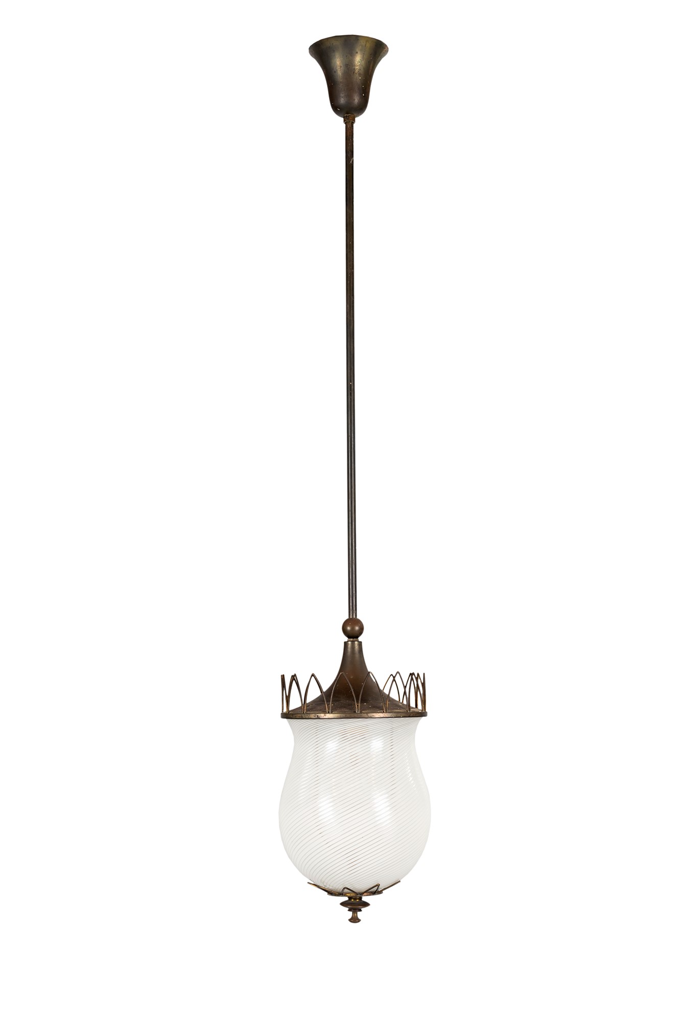 Lanterna - in vetro retinato lattimo dettagli in ottone - 1940 ca - VENINI MURANO - cm.94x16