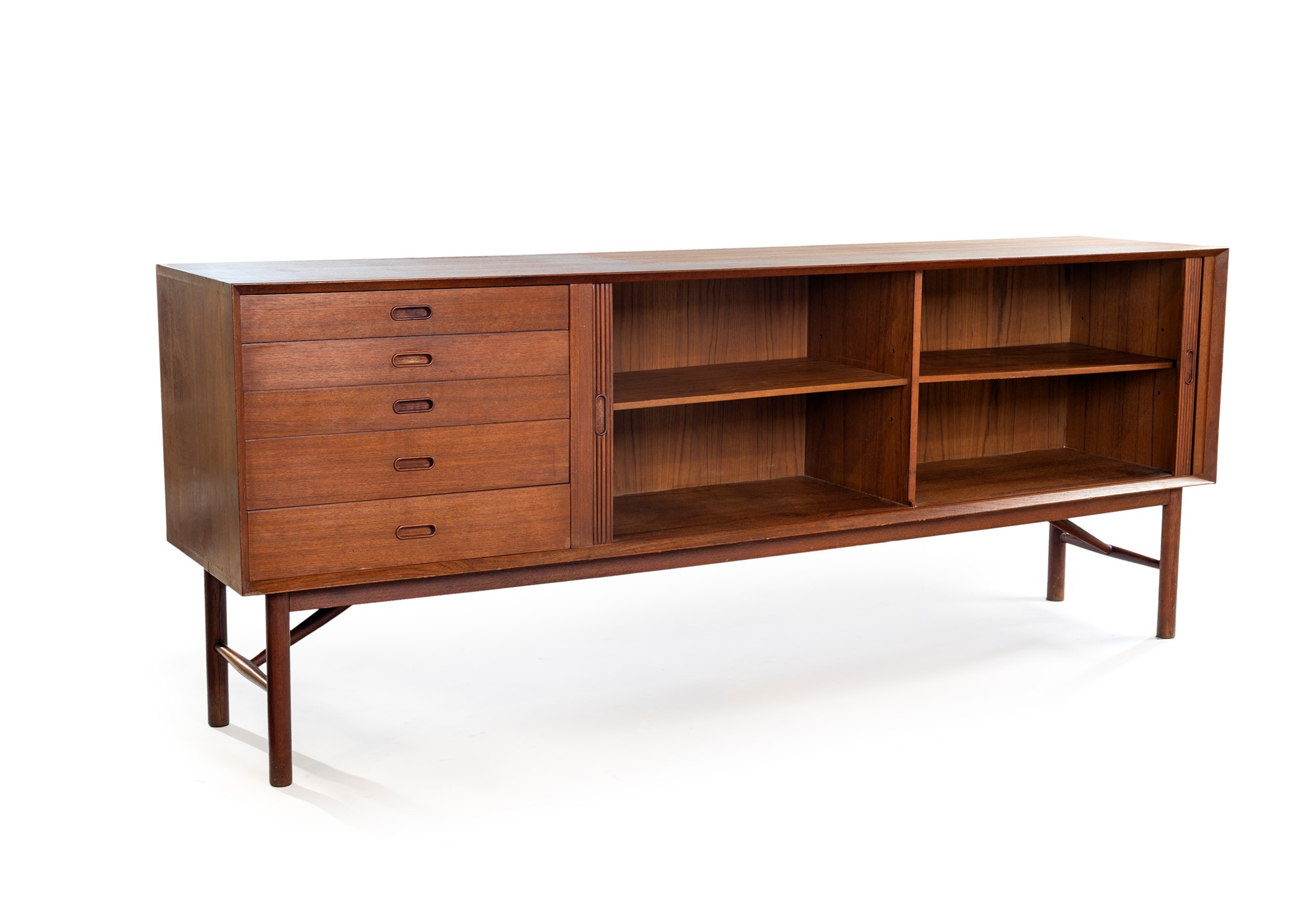 Sideboard - in teak chiaro con serrandina e cassetti - 1960 - PRODUZIONE DANESE - cm87x2.20x48