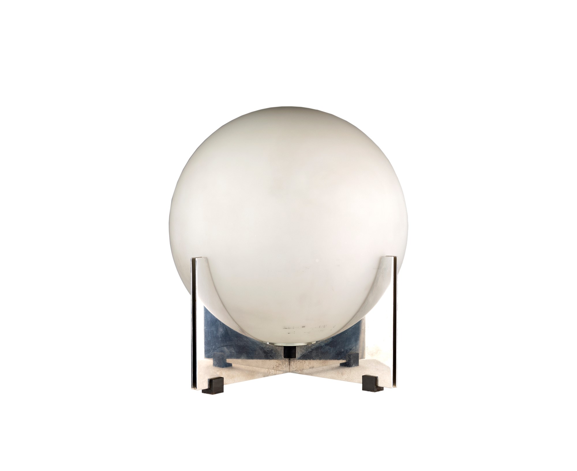 Lampada da tavolo - grande sfera opale sostenuta da una struttura in acciaio - 1970 - PRODUZIONE ITALIANA - cm 48 diam.x48