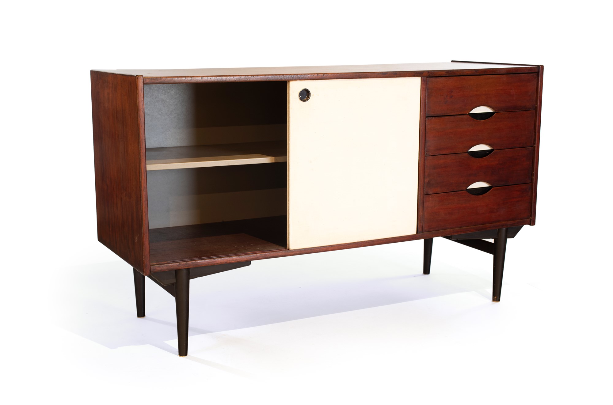 Sideboard - In legno di teak con sportelli bianchi ,ripiani e cassetti - 1960 - PRODUZIONE DANESE - cm 78x133x44