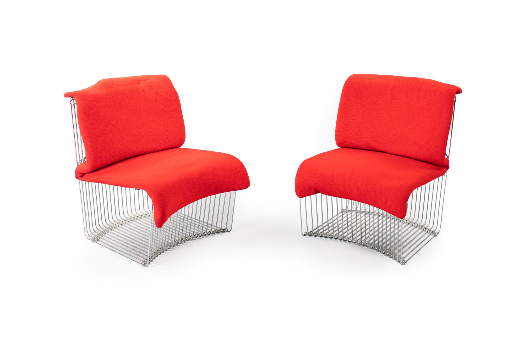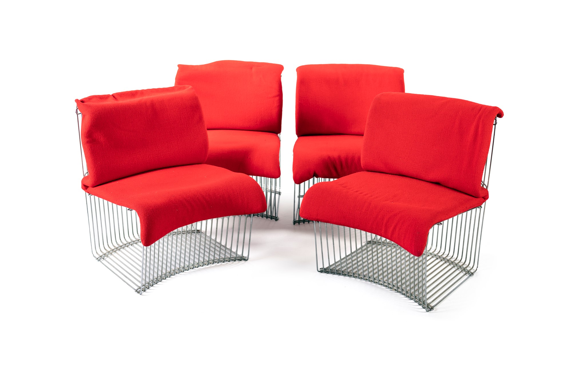 Quattro Poltrone - struttura in tondino d'acciaio rivestimento in tessuto originale -1960 - WARREN PLATNER Attr. - cm 75x57x60