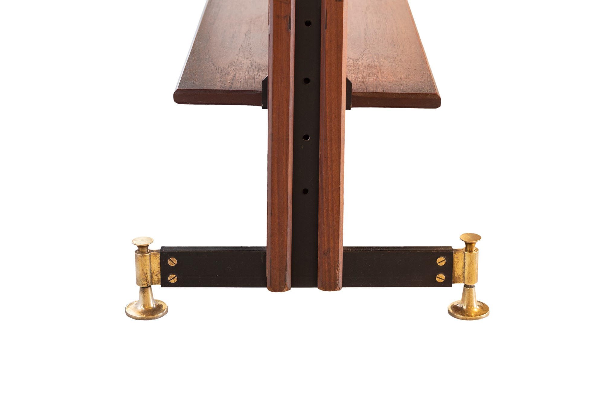 Libreria - in legno di teak con montanti in legno e ferro tre ripiani e un contenitore dettagli in ottone - 1960 - IGNAZIO GARDELLA Attr. - cm 220x100x40