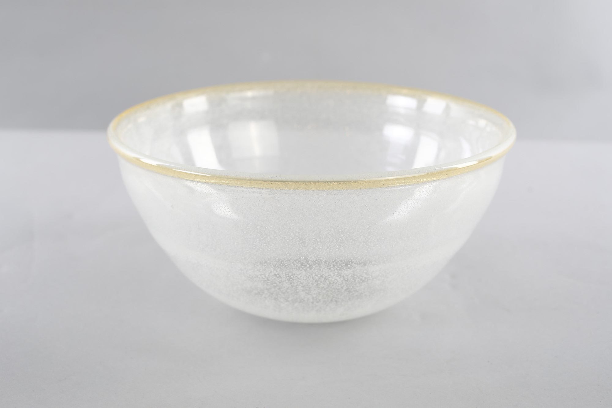 Ciotola - in vetro soffiato a bollicine bordo giallo Prod. Murano - 1970 ca - BAROVIER & TOSO - cm24x12x7