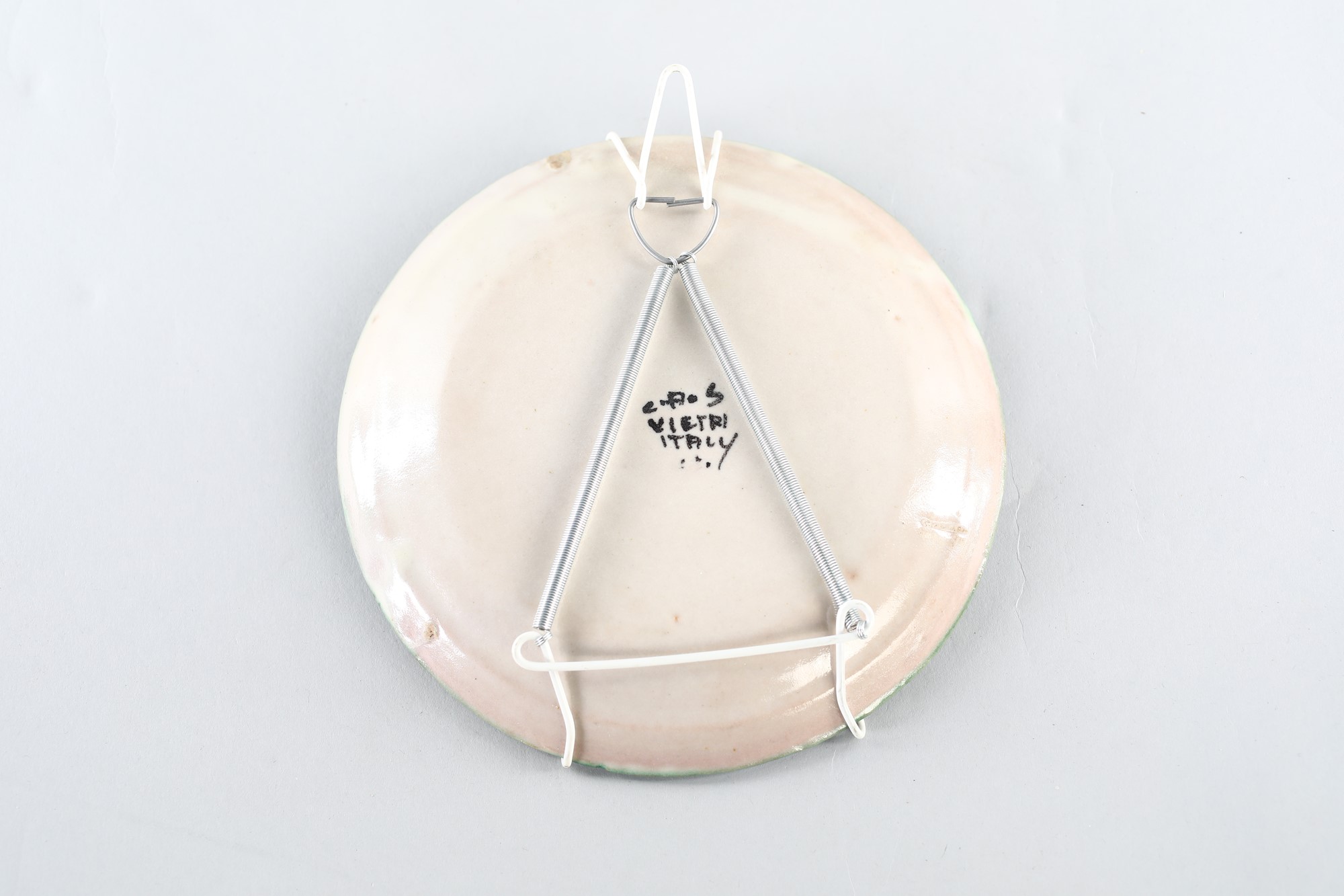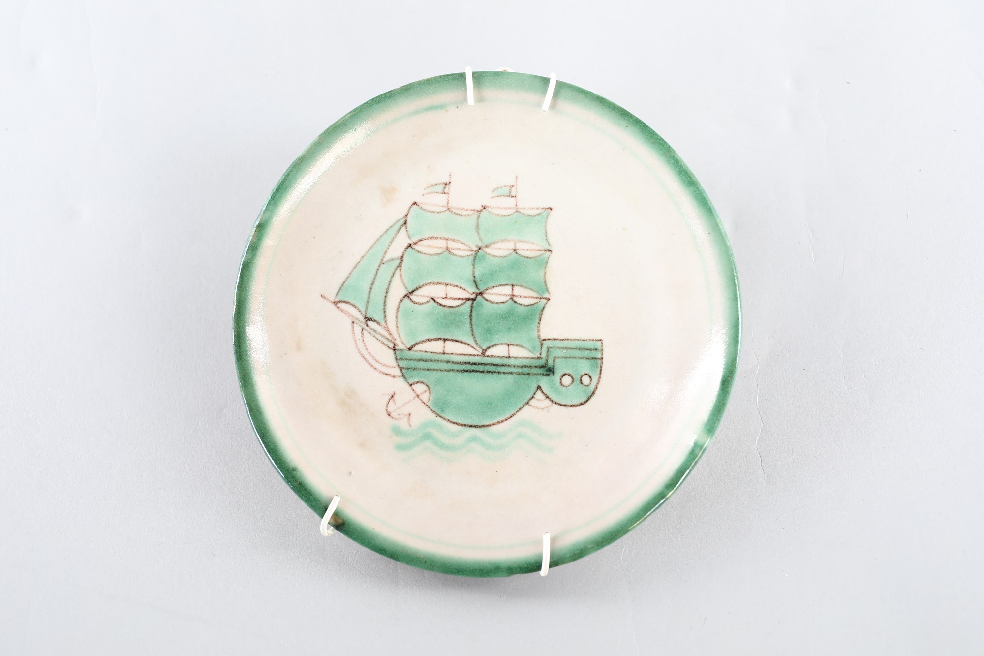 Piatto - in terracotta ingobbiata e smaltata con decorazione di un veliero Marchio siglato sul fondo C.A.S.Vietri Italy - 1950 - CAS Ceramica Artistica Solimene - diam.cm.18