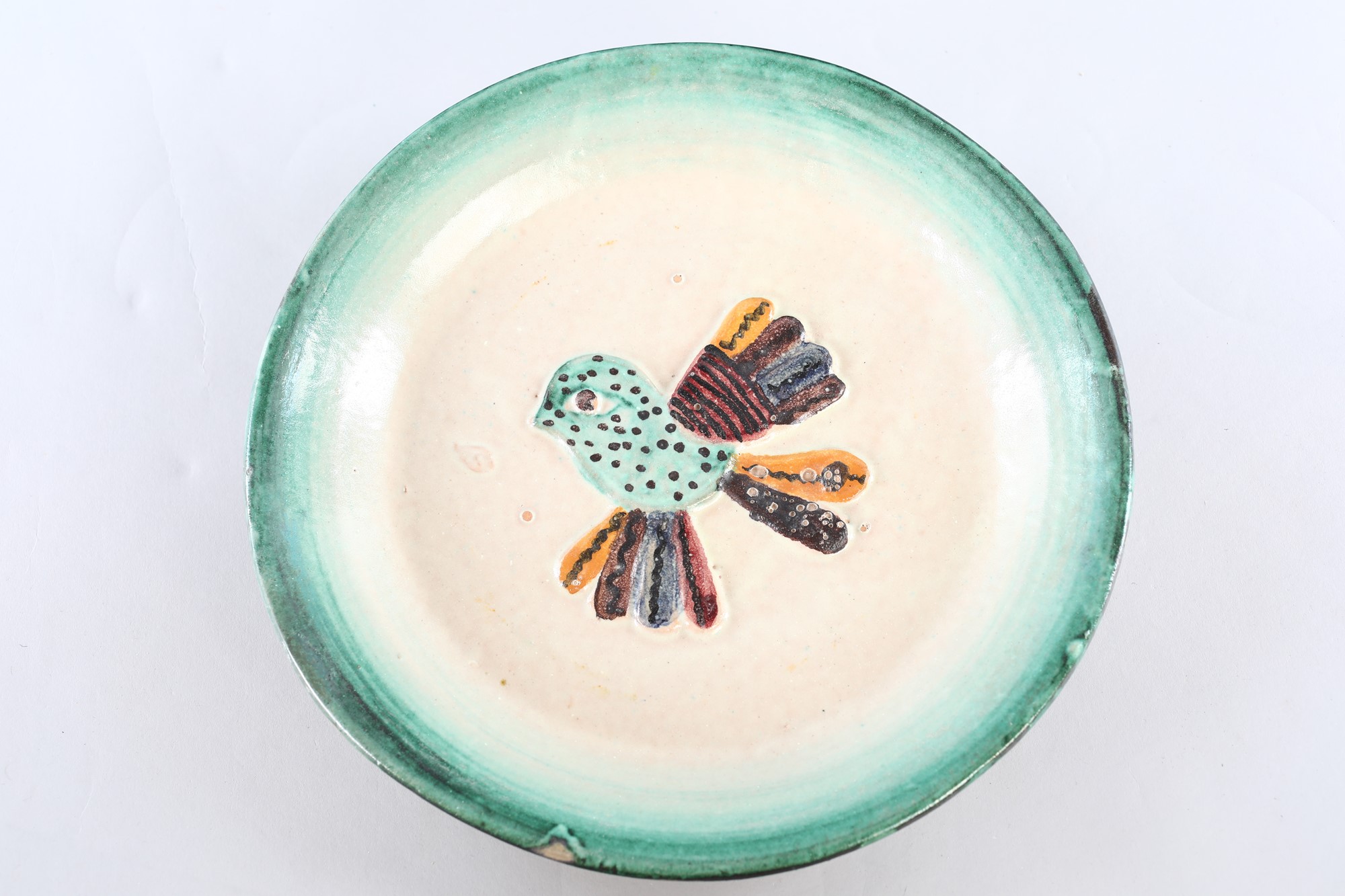 Piatto - in terracotta ingobbiata e smaltata con decoro a rilievo marchio siglato nel retro Avallone - 1950 - ICA AVALLONE - diam.cm.29