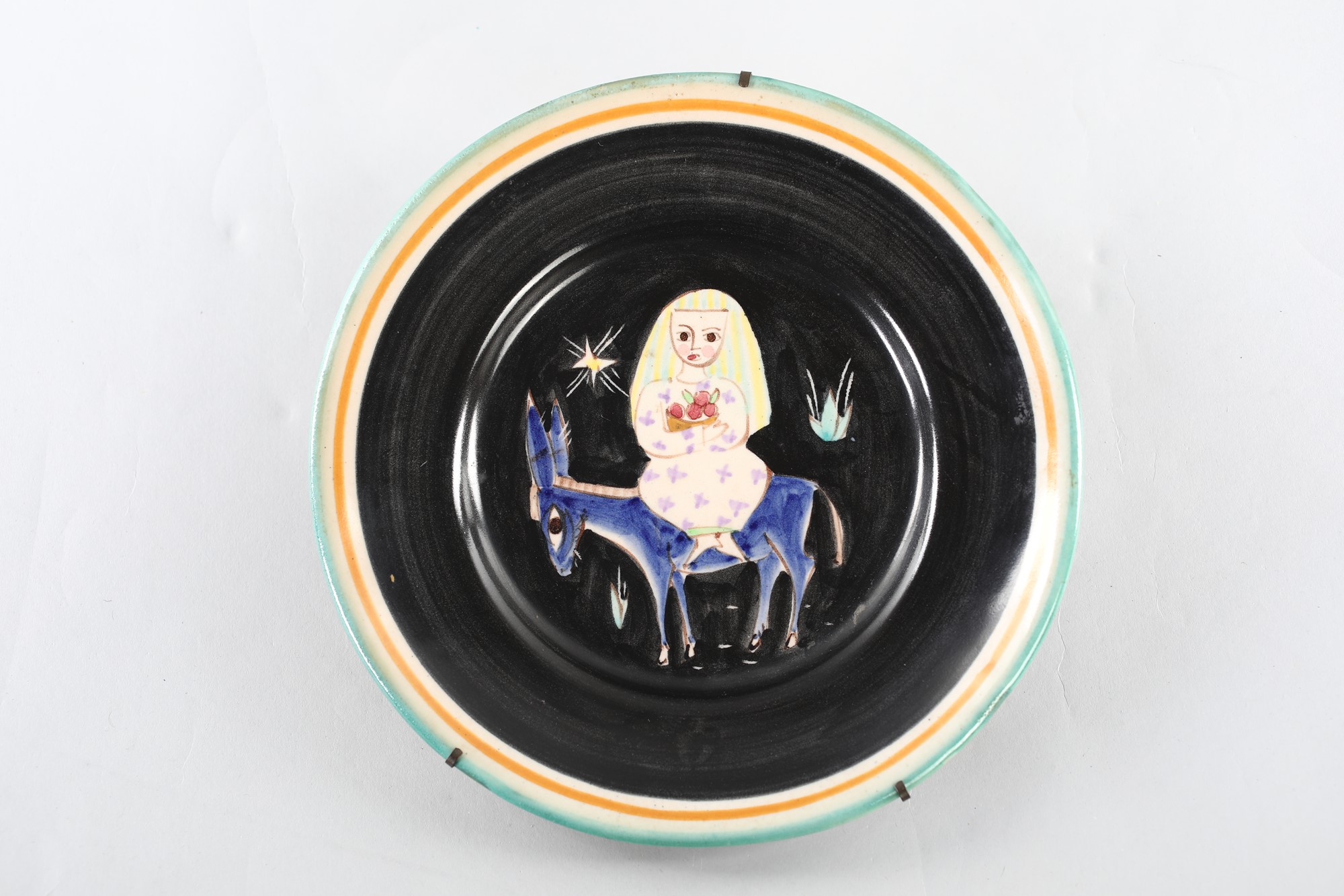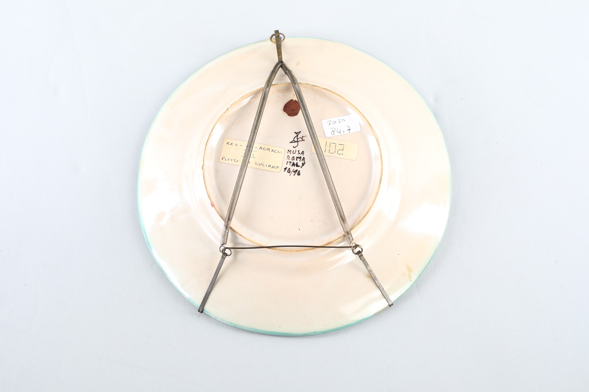 Piatto - in terracotta ingobbiata e smaltata su fondo nero .Reca marchio siglato sotto la base. - 1950 - MUSA Roma - diam.cm25