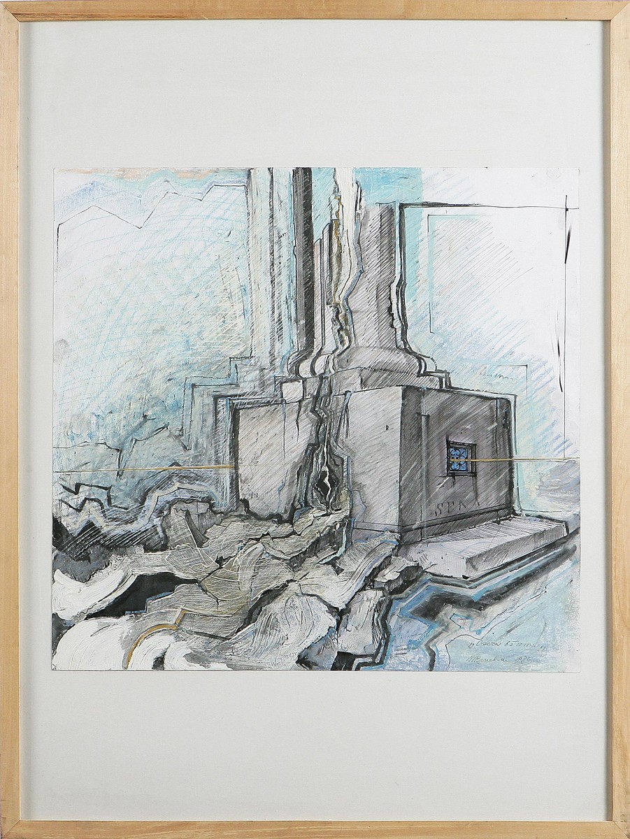 BERRETTINI MAURO (n. 1943) Senza titolo, 1985. Tecnica mista su carta. Cm 50x52. Firma, data e titolo illeggibile in basso a destra.