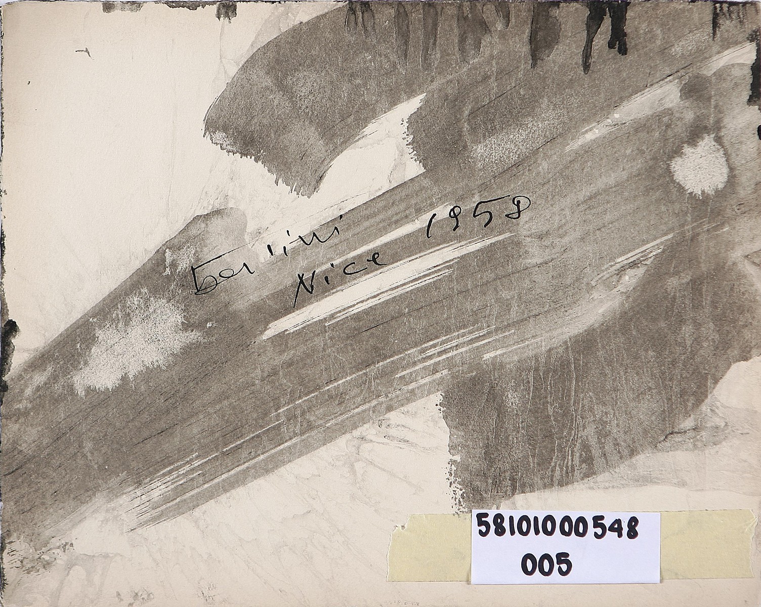 BERTINI GIANNI (1922 - 2010) Senza titol, 1958. China su carta. Cm 22,5x28. Opera archiviata presso l'archivio delle opere di Gianni Bertini, presso Frittelli Arte, come da documentazione fotografica allegata riportante il relativo numero d'inventario. firmato e datato in basso a destra