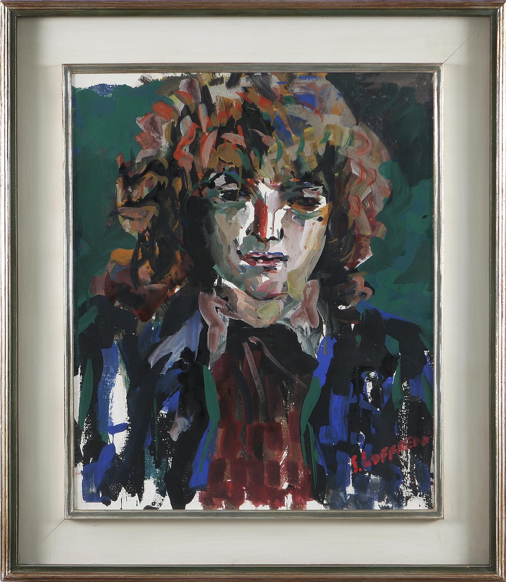 LOFFREDO SILVIO (n. 1921) Ritratto. Olio su cartone pressato. Cm 60x49. Firma in basso a destra. Al retro firma.