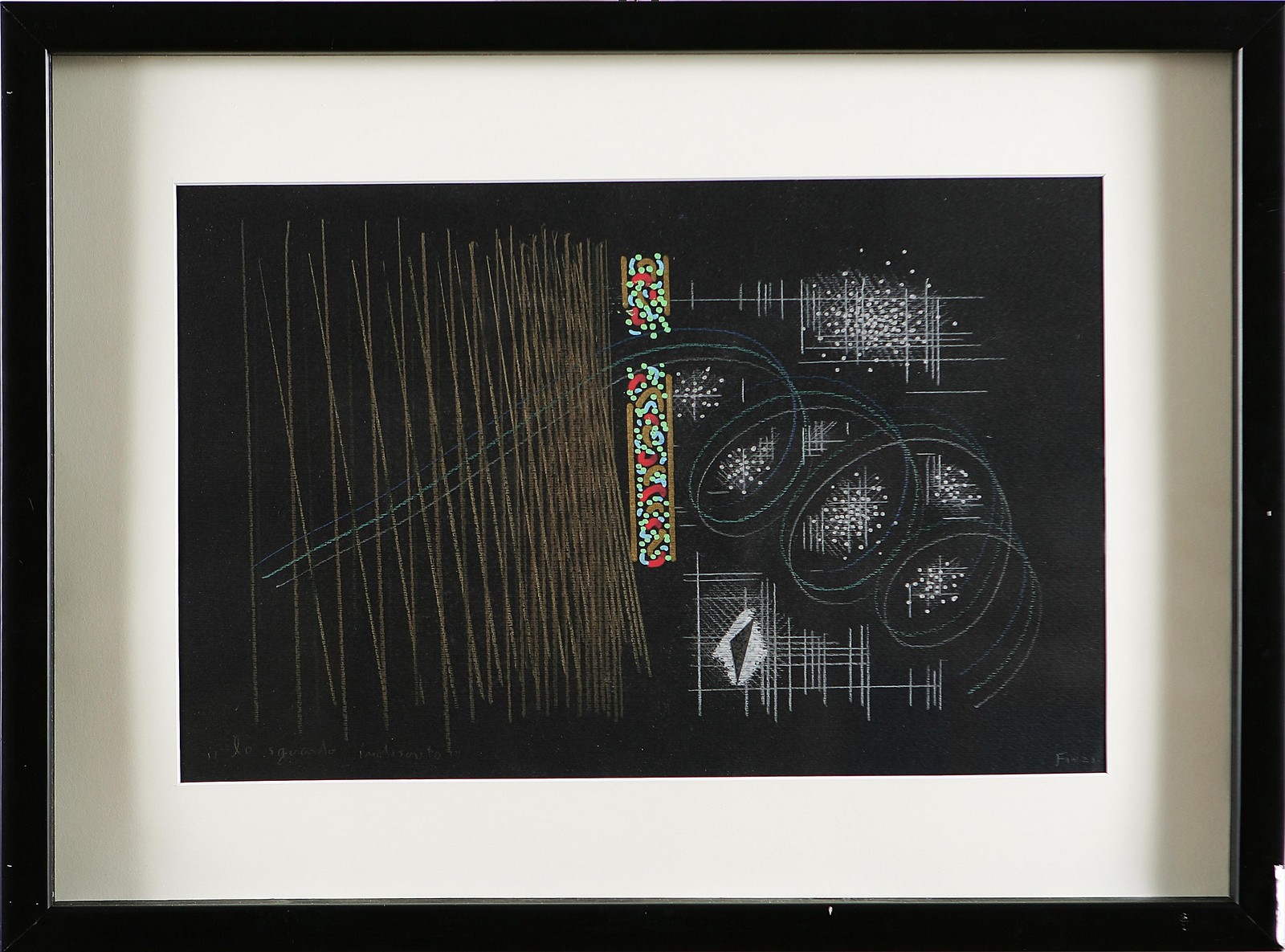 Lotto 408 | FINZI ENNIO (n. 1931) Lo sguardo indiscreto. Collage e pastelli su...