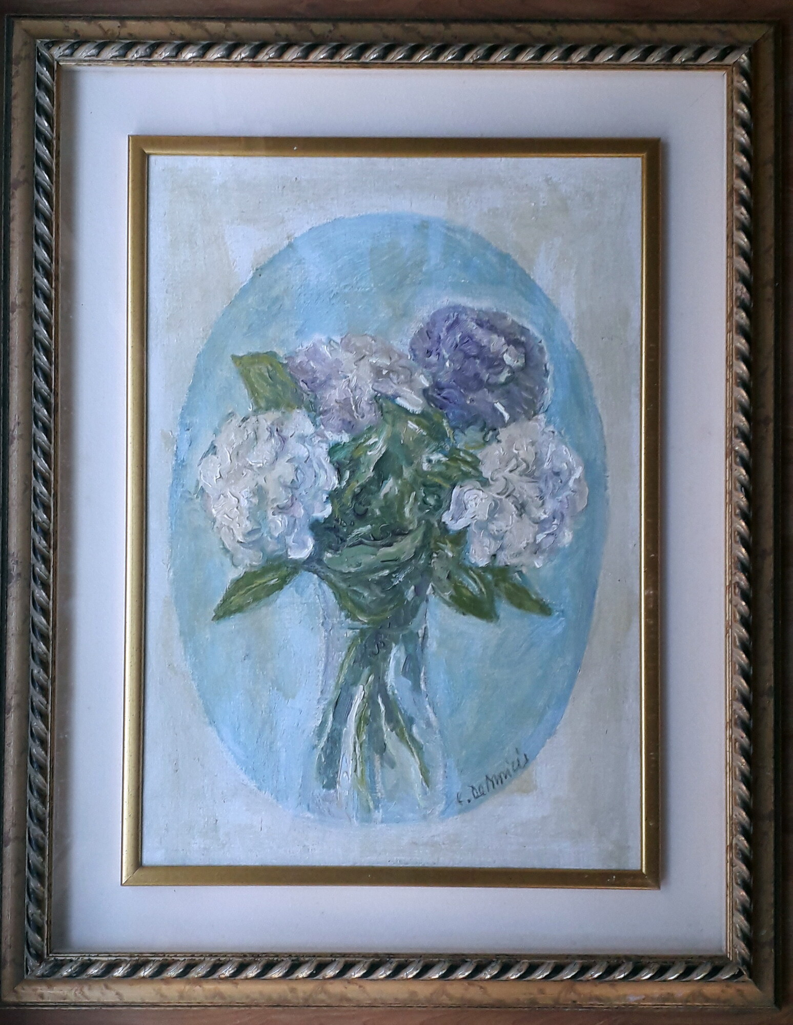 DE AMICIS CRISTOFORO Alessandria (Al) 1902 Ortensie nell'ovale Olio su tela...