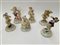 Manifattura tedesca, gruppo di sei sculture in porcellana policroma raffigurant