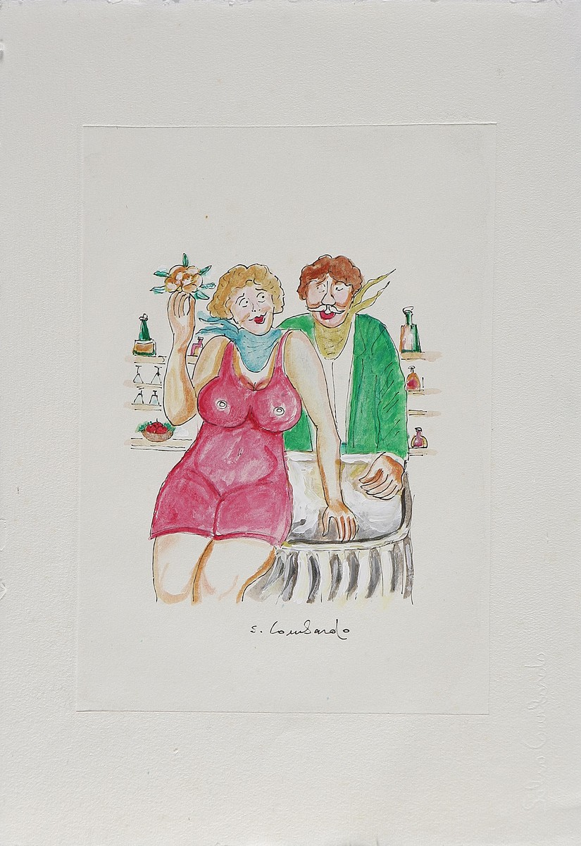 LOMBARDO SALVO (n. 1948) Senza titolo. Tecnica mista su carta. Cm 34,5x24. Misure di tutto il foglio: 50x36 cm. Firma in basso al centro.