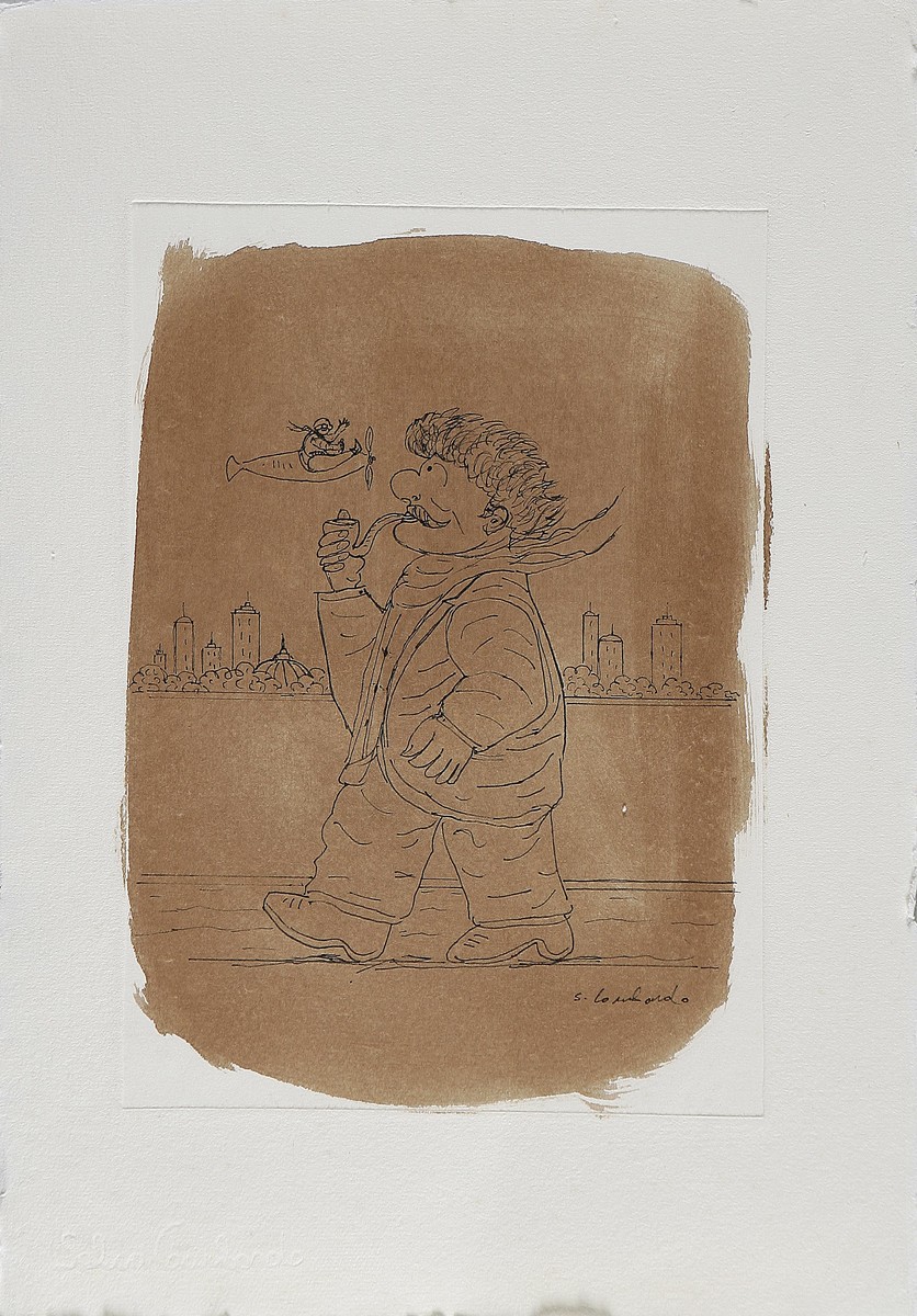 LOMBARDO SALVO (n. 1948) Senza titolo. Tecnica mista su carta. Cm 35x24. Misure di tutto il foglio: 50x36 cm. Firma in basso a destra.