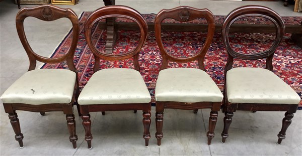 Lotto composto da due coppie di sedie del secolo XIX con schienale a giorno e gambe anteriori tornite (difetti)