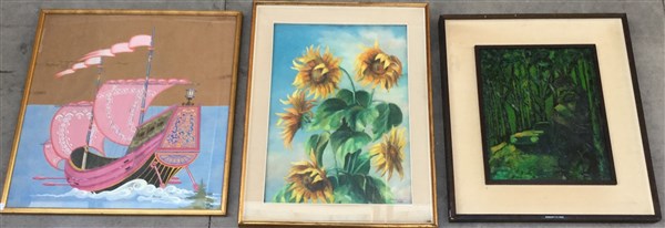 Lotto composto da tre dipinti di autori e misure diverse. In cornici (difetti)