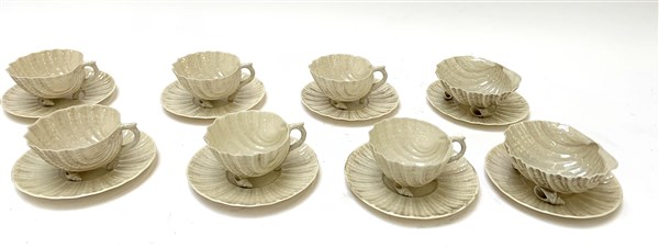 Servizio in porcellana Belleek Nettuno costituito da dodici tazze con piattini