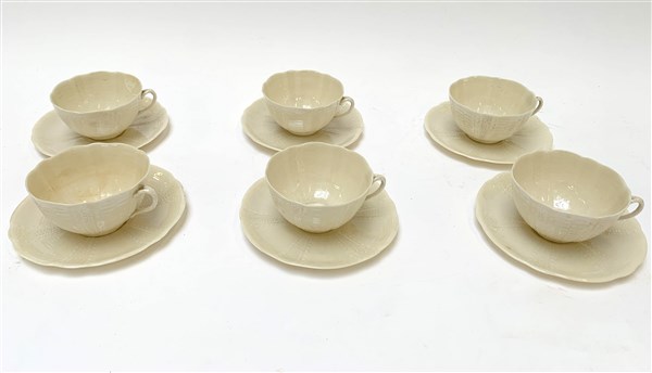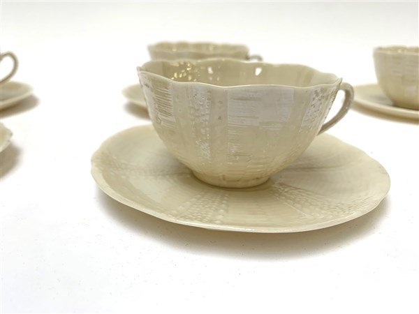 Parte di servizio in porcellana Belleek costituito da undici tazze con piattini, sulla