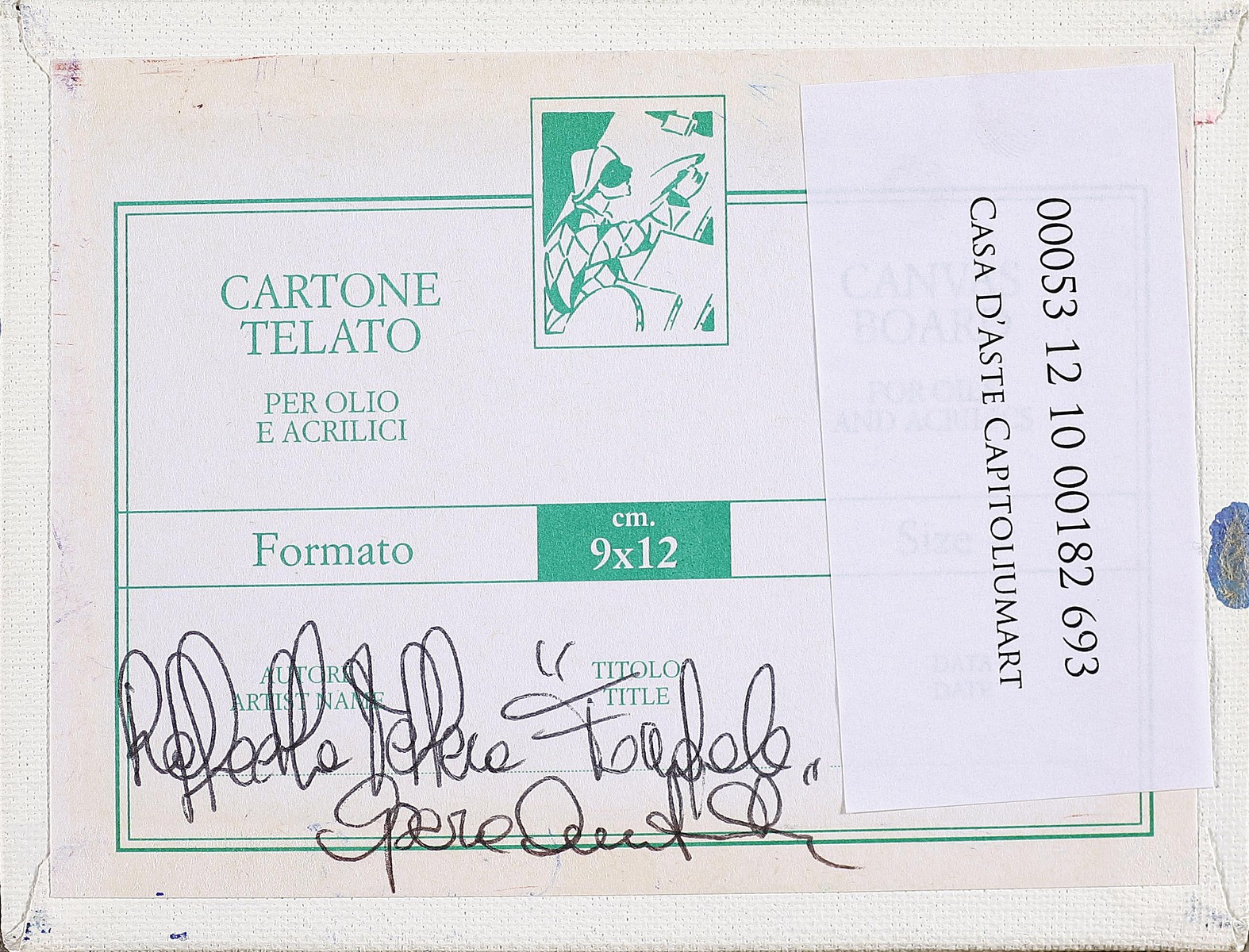 VELLERA RAFFAELLA (n. 1975) Fondale. Olio su cartone telato. Cm 9x12. Firma in basso al centro. Al retro firma per autentica, titolo e tecnica.