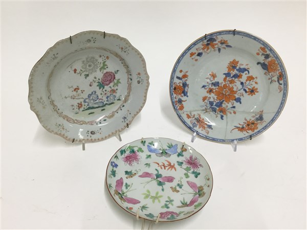 Lotto di tre piatti di manifattura orientale diversa del sec. XVIII/XIX (d. max