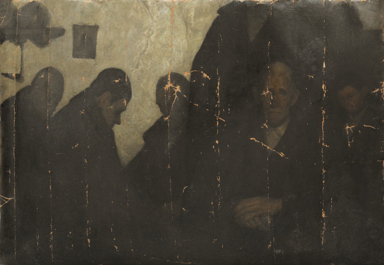Ambito di Vladimir Schereschewsky (1863 - 1945) "Figure in un interno" olio su tela (cm 200x245)