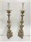 Coppia di portaceri tripodi in rame sbalzato a volute e fregi, montati a luce e