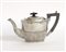 Teiera in argento con corpo scanalato, ansa e presa del coperchio in legno. Pun