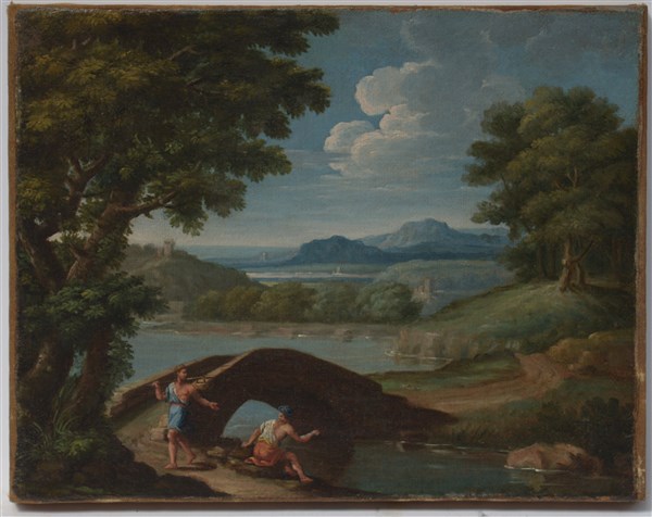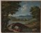 Scuola italiana del secolo XVIII "Paesaggio con figure" olio su tela (cm 27x34,5) (difetti)