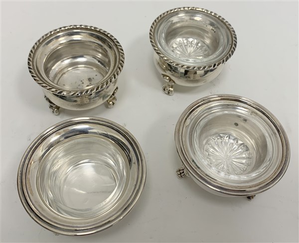Lotto composto da quattro salierine in argento di diversa fattura. Titolo 800 (g 160 ca.)