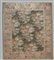 Annodato a mano in lana con iscrizione in basso a destra in lingua armena. Motivo con mazzi di fiori sparsi nel tono del rosa, albicocco, nocciola, rosso, lilla, verde chiaro su campo verde pineta roanato. Grande bordura a fondo color sabbia cosparso di fiori in tema. (cm 357x280) (lievi difetti)