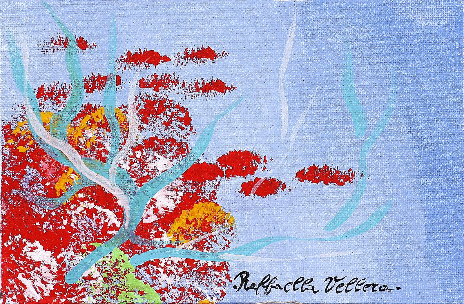 VELLERA RAFFAELLA (n. 1975) Coralli. Olio su cartone telato. Cm 10x15. Firma in basso a destra. Al retro firma per autentica, titolo e tecnica.