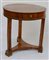 Tavolo da centro di forma circolare con fascia ad un cassetto e profili in ottone. Montanti a mezza colonna con capitelli dorati, poggianti su pianetto sagomato. Secolo XIX (d. cm 74x h. 80)