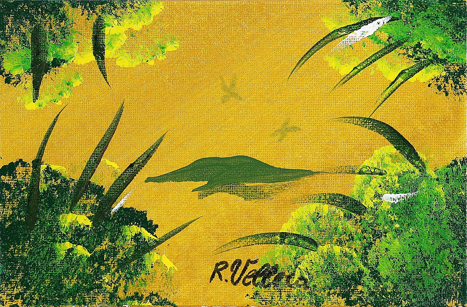 VELLERA RAFFAELLA (n. 1975) Isola. Olio su cartone telato. Cm 10x15. Firma in basso al centro. Al retro firma per autentica, titolo e tecnica.