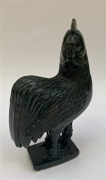 Scultura in pietra dura verde raffigurante galletto Cina, sec. XX (h. max cm