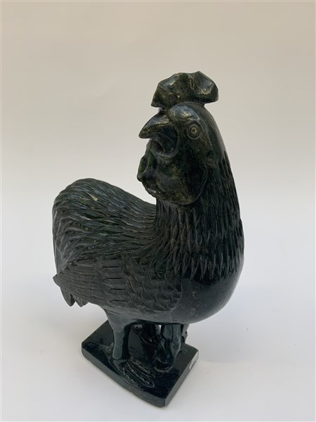Scultura in pietra dura verde raffigurante galletto