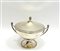 Centrotavola biansato in argento a corpo liscio di forma circolare. Coperchio c
