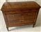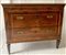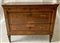 Coppia di comò a due cassetti e mezzo lastronati in noce, filettati e intarsiati a vasi con fiori. Gambe troncopiramidali, fine secolo XIX (cm 103x88x53) (restauri e mancanze)