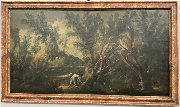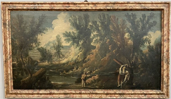Lotto 473 | Ignoto "Paesaggi con figure" coppia di antichi dipinti ad olio su tela (cm 63x1