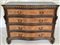 Canterano con fronte mosso a quattro cassetti radicati e filettati. Fianchi riquadrati con sagomette in rilievo, piedi terminanti a ricciolo. Lombardia secolo XVII (cm 137x114x63) (difetti e mancanze)