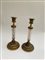 Coppia di candelieri in bronzo con fusto in cristallo molato, cesellati a motiv