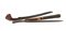 Lotto di due coltelli, uno con fodero ed impugnatura in metallo argentato ed un altro senza fodero con impugnatura in legno intagliato a forma di pappagallo.